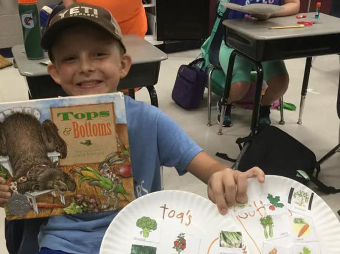 Farm Bureau volunteers shared the story, "Tops and Bottoms," with third graders and completed an activity where students had to categorize vegetables as tops, bottoms, or both. Students learned about vegetables as they completed their Venn Diagrams.