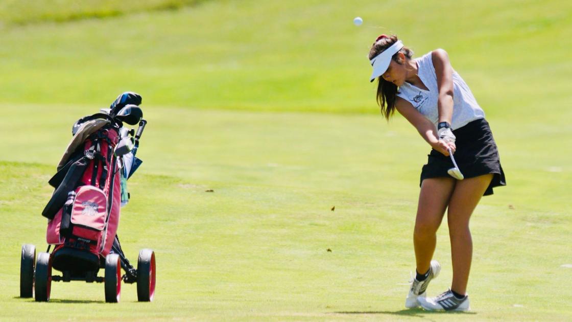Crown Point's Valentina Gozo hits a shot into the No. 1 green Wednesday during the Crown Point Invitational at White Hawk Country Club in Crown Point. She helped the host Bulldogs win the team title.