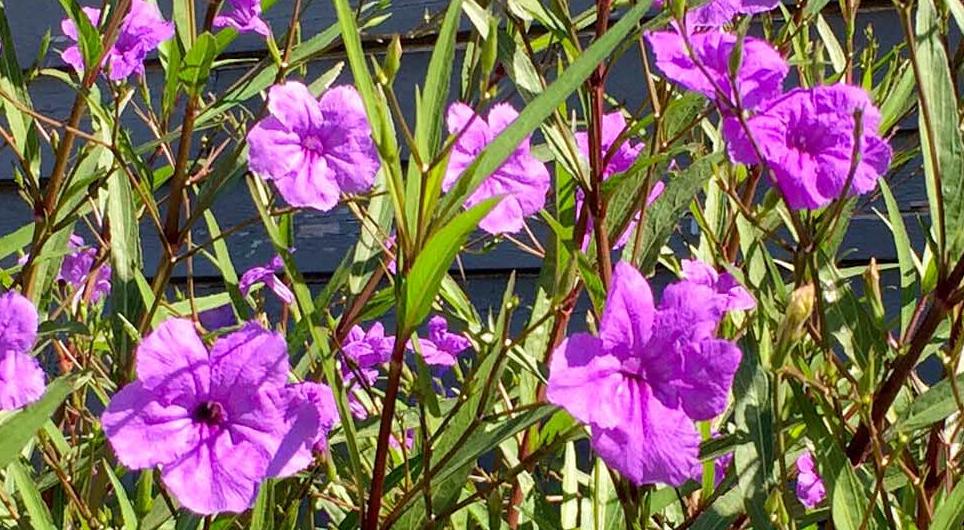 A. It’s Mexican petunia, Ruellia brittoniana. You’re right on its invasive nature. However, kept in bounds by use of concrete boundaries, etc., it’s a handsome perennial. It’s just too bad when it invades. You’ll need to remove it physically (shovel, unfortunately), then install a root barrier around either the bed where you don’t want it or the bed where it’s currently growing. If you don’t have any of it growing in your yard, it may be coming from seed from a garden nearby, in which case you’ll have to eliminate it as the seedlings sprout.