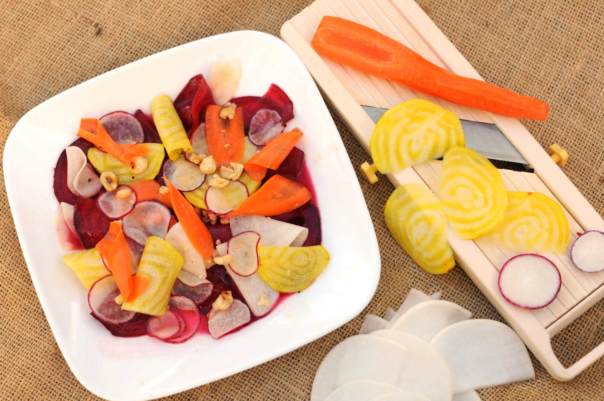 This recipe transforms tough root vegetables into a bright and refreshing salad with the help of a mandoline slicer.