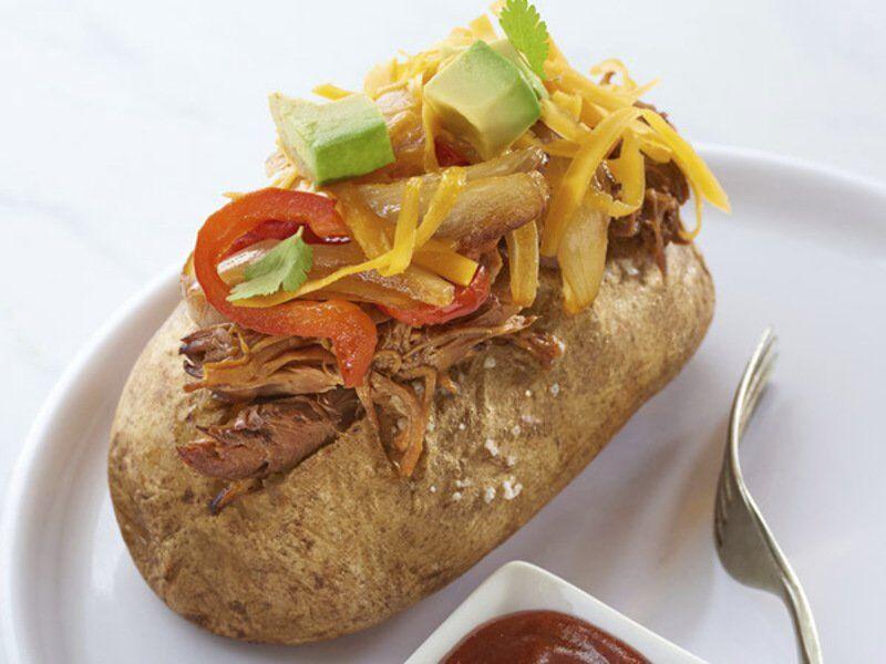 J.R.’s sauce is sweet with a little spice, making it great either to marinate, cook with or to pour over the top of any of your favorite meats. Our recipe begins with a pork roast, cooked in a slow cooker with J.R’s plus Southern Roots Sisters Raspberry Chipotle Jam. Cover the baked potato in the shredded pork, then pile high with cilantro, cheese, avocado and sauteed bell peppers.