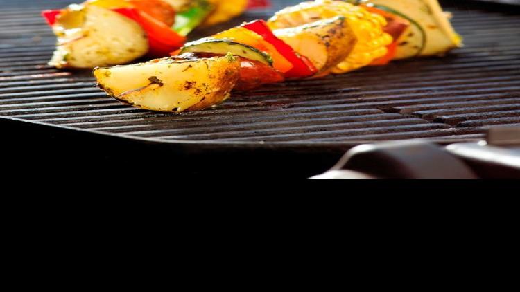 5. Grill over medium-high heat for about 10 minutes, turning frequently and brushing with a little of the herb mixture during the last few minutes of cooking. Remove from grill, discard the foil and place the skewers on a platter; drizzle with remaining herb mixture. Serves 6.